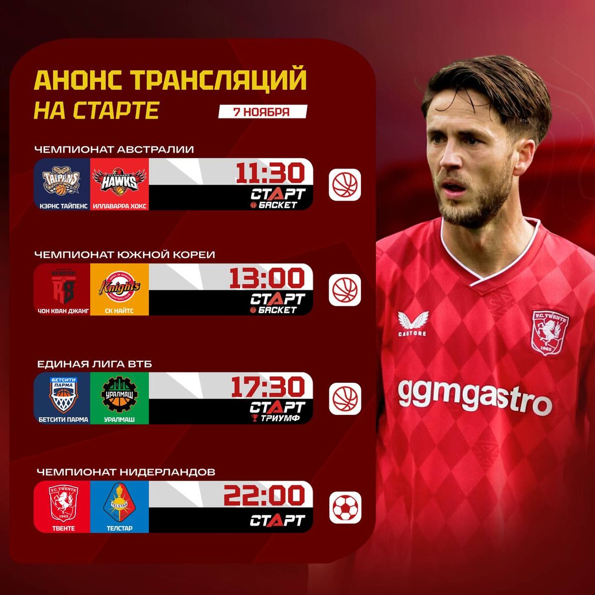 Начнём с австралийского и корейского баскета, после последим за очередным матчем Единой Лиги ВТБ, а уже вечером посмотрим противостояние «Твенте» и «Телстара» в Эредивизи✌️