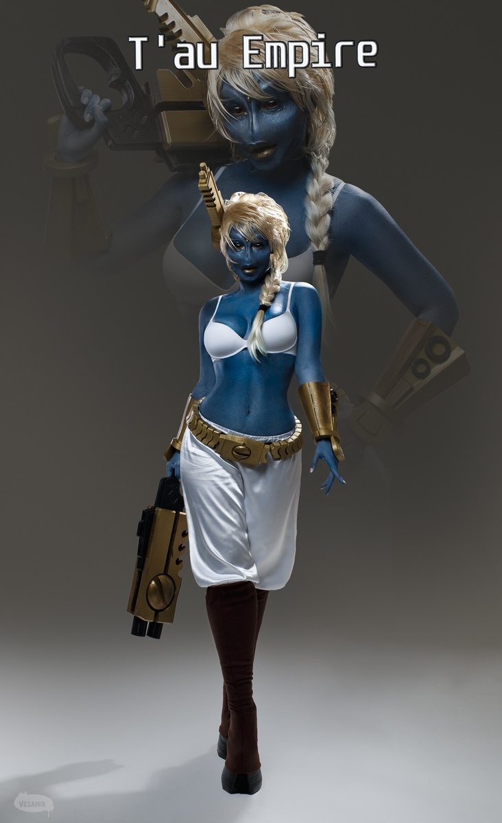 Во вселенной Warhammer 40k нет места компромиссам, но даже среди бесконечных войн и фанатизма выделяется цивилизация Т’ау. Эта высокоразвитая раса верит в «Великое Благо» и ставит технологический прогресс выше всего. Косплей на представителя T’au Empire впечатляет точностью деталей — от фирменного синего оттенка кожи до золотых элементов экипировки, отражающих эстетику футуристического оружия и гармонии разума. Такой образ словно переносит зрителя в мир, где единство и дисциплина важнее индивидуальности. Фэндом: Warhammer 40k