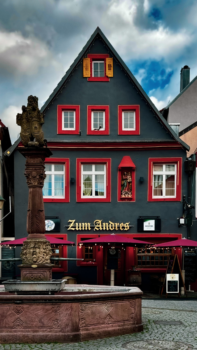 В самом сердце старого города, среди узких улочек и домов с покатыми крышами, стоит Zum Andres — одно из тех мест, где время не спешит. Дом построен ещё в XVI веке, и это чувствуется сразу — в тяжёлых деревянных балках, в окнах, которые словно смотрят на тебя в ответ, и в фасаде, где каждая деталь несёт след рук прошлого. Когда-то здесь жили местные торговцы и ремесленники. Дом пережил войны, пожары, смену эпох и стилей, но остался почти таким же, каким был несколько столетий назад. Внутри до сих пор чувствуется тепло дерева, которое впитало голоса людей, проживших здесь целые жизни. Теперь здесь — ресторан с простой, понятной южно-немецкой кухней: блюда из сезонных продуктов, швабские и баденские рецепты, которые готовят без спешки. Тут не про гастрономические эксперименты. Тут про то, чтобы сесть у старой стены, посмотреть на свет из маленьких окон и почувствовать себя частью города, который живёт давно и будет жить дальше. Zum Andres — это Оффенбург без фильтров. Спокойный, тихий