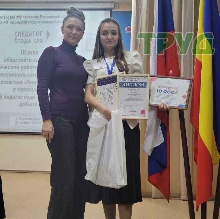 Виктория Николаевна Морозова, преподаватель географии и биологии Каменского химико-механического техникума, стала лауреатом первой степени в номинации «Молодой педагог 2025 – педагогический дебют». Ежегодный областной конкурс «Педагогический работник в системе СПО Ростовской области» стартовал 1 сентября 2025 года и продлился до конца октября. Участникам предстояло пройти три этапа. Вначале – конкурсное мероприятие «Я – Преподаватель», представлявшее собой публичное выступление, в рамках которого участник демонстрировал эффективные практики организации процесса обучения и воспитания обучающихся в соответствии с ценностными ориентирами и современными социокультурными тенденциями развития образования. Далее следовал «Мастер-класс» — учебное занятие с группой. Заключительный «Конкурс образовательных кейсов» предусматривал работу проектной команды из пяти человек. – Мой путь в педагогику начался с выпускных экзаменов в Таганрогском институте имени А.П. Чехова, – рассказывает о себе Виктори