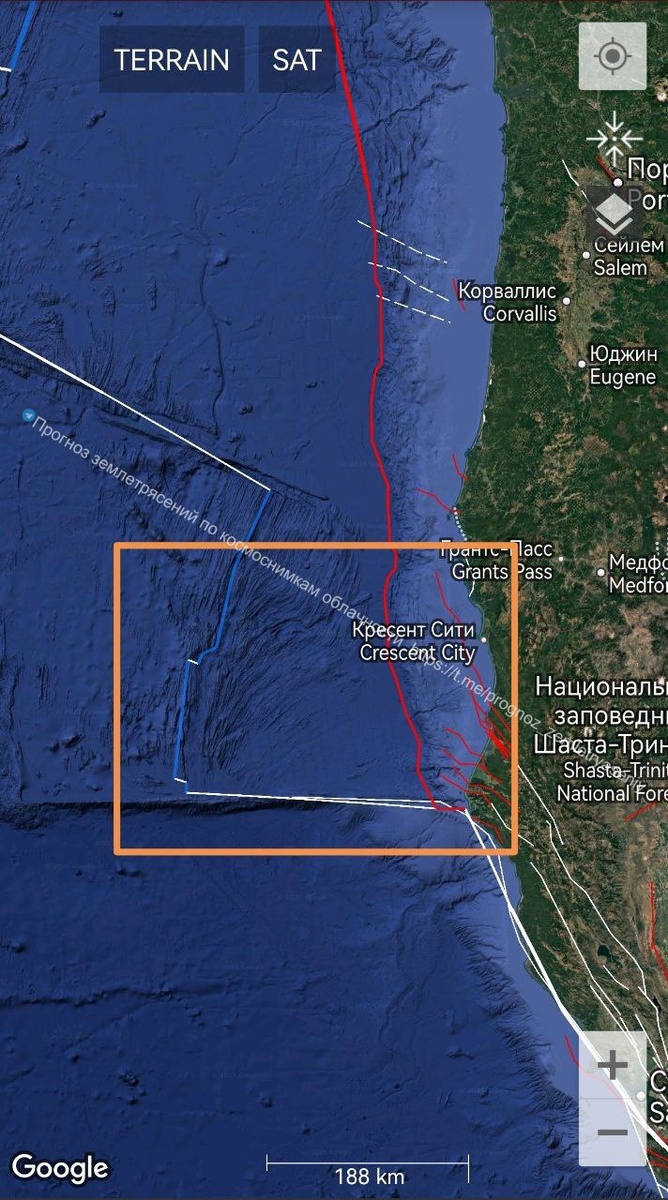 The southern boundary of the Gorda plate is relevant for the M6+ event