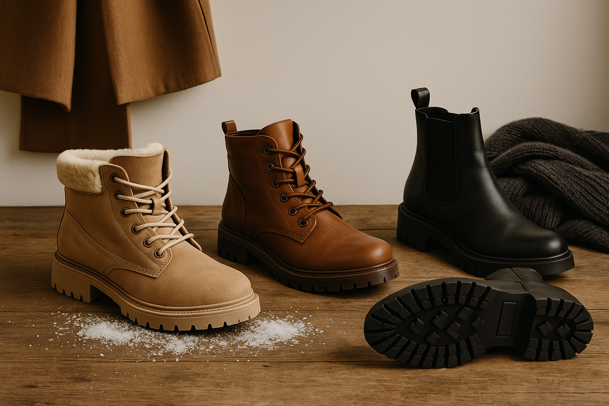 Задача зимней пары простая: держать тепло, не скользить и выглядеть аккуратно. Ниже — короткая система выбора без брендов и маркетинга: что смотреть в магазине, как проверять сцепление, какую высоту/форму брать под ваши вещи и как облегчить визуально даже тёплую обувь.