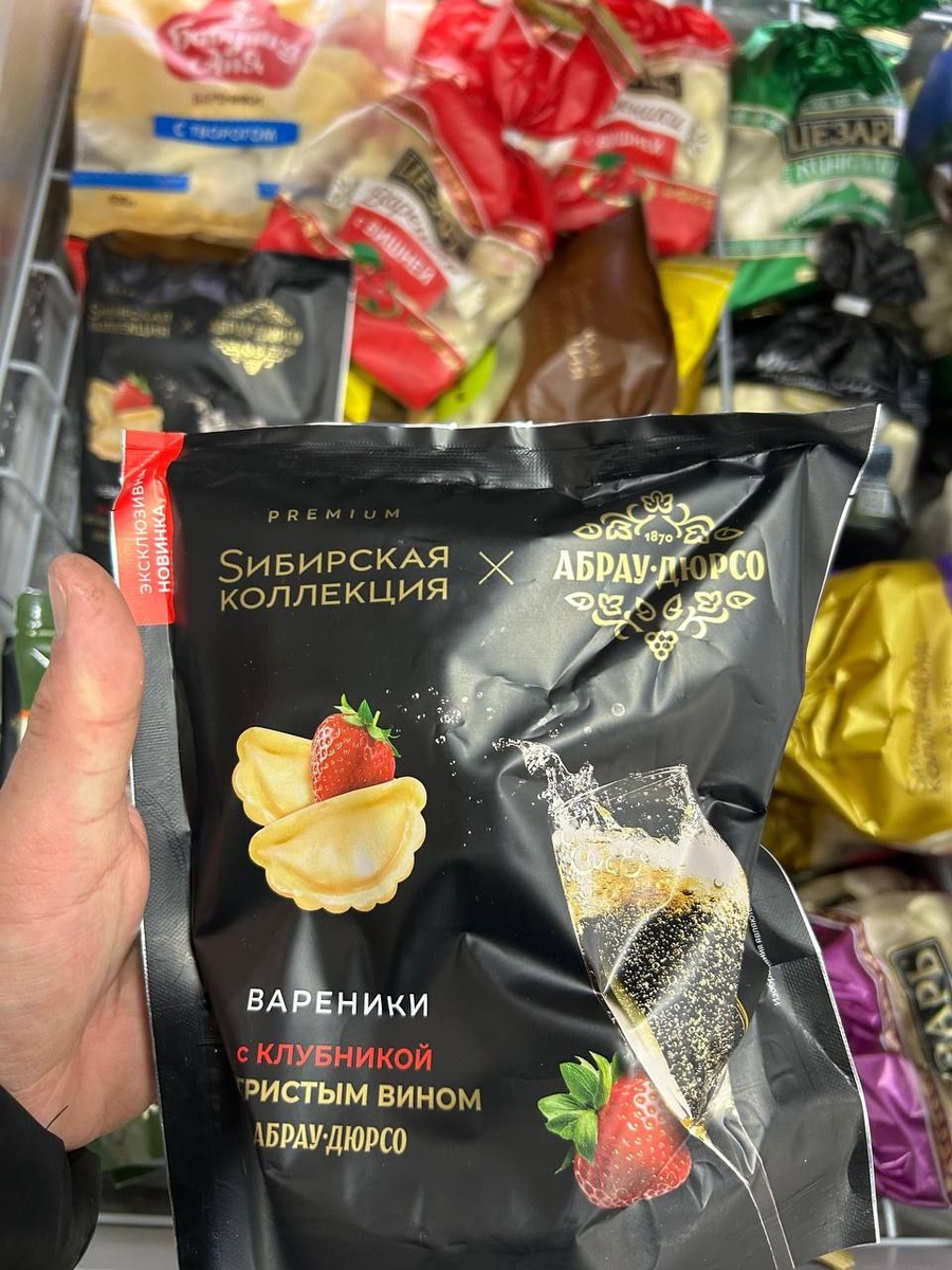 Вареники с шампанским и клубникой уже завезли в Магнит. Необычную новинку выпустила Сибирская коллекция в коллаборации с Абрау Дюрсо. Стоит роскошь для извращенцев 200 рублей по акции 😃