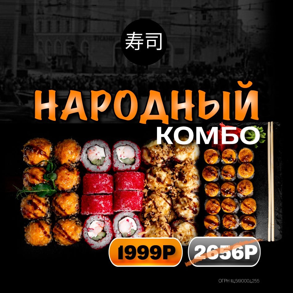 NEW! НАРОДНЫЙ КОМБО — встречай вкус, который объединяет всех! ⠀ 🔥 Только до 11.12.2025 — огромный сет из 42 роллов / 1145 г всего за 1999₽ вместо 2656₽! ⠀ 🍣 В составе: Сливочная креветка лайт ролл, Кранч туна ролл, Ридик ролл, Терияки маки хот, Чиз маки хот, Кани маки хот 😍 ⠀ Это тот самый “народный” выбор — много, вкусно и выгодно! 💯 ⠀ 📆 Успей заказать — акция действует с 07.11 по 07.12.2025! *Скидка не суммируется с другими акциями и бонусами.