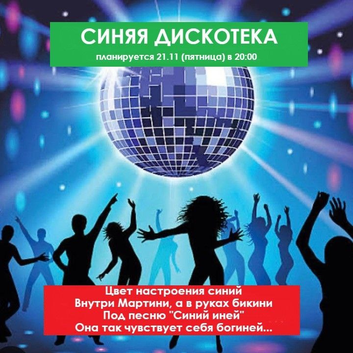Всем привет! Синий😁 Мы давно не делали дискотеку.. 🤔 исправляемся..💃 Итак, 21 ноября (пятница) танцует клуб «Заброшки39»🎉🔥🥳 💃Время: 20.00-02.00. 💃Место: ночной клуб «Кочегарка» (Батальная 17а). 💃Стиль: «Цвет настроения -синий». Т.е в вашем образе должны быть элементы синего, голубого, бирюзового🥿🧢👔 💃 Условия: 2000 руб. (1000- это бар, 1000- аренда зала, диджей, охрана) 💃 Алкоголь, вода и сок будет предоставлен баром. Со своим нельзя. 💃 Вход по предварительной записи. Будет создана голосовалка с оплатой сразу. Переводим @tiana_39 по номеру на Т-Банк. +79527950796 Давайте вместе оторвемся💃🎉 Будет весело!
