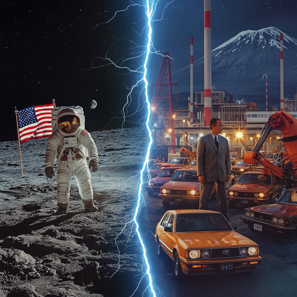 Представьте: где-то в космосе, за миллионы километров от дома, американский астронавт Нил Армстронг медленно спускается по лестнице лунного модуля и произносит: «Это маленький шаг для человека, но гигантский скачок для человечества». А на Земле — конкретно в Токио — в тот же момент кто-то делает не менее судьбоносный шаг… в сторону ближайшего станка. Потому что именно в эти годы Япония начала свой легендарный марш из руин Второй мировой к вершинам мировой экономики. 1969 год — апофеоз холодной войны. США и СССР не просто соревнуются, кто больше вывезет ракет на орбиту, — они меряются… престижем.