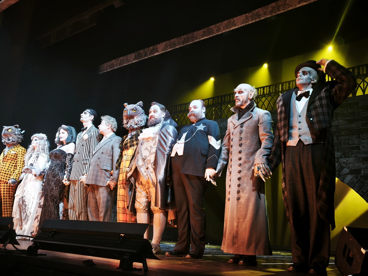 Во-вторых - просто шикарная сценография - идея с черно-белым кино огонь! А шутка про платья?!!