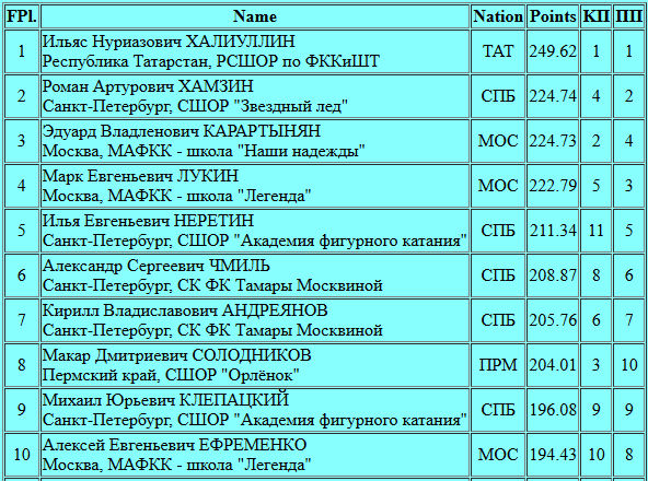 В турнире принимали участие 18 парней, но бенефисом он стал лишь для одного из них, о чем вы можете судить по набранным баллам. Ильяс Халиуллин сегодня настоящий герой Казани ! Отмечу прокаты четверки лидеров, которая далеко ушла от всех вперед.