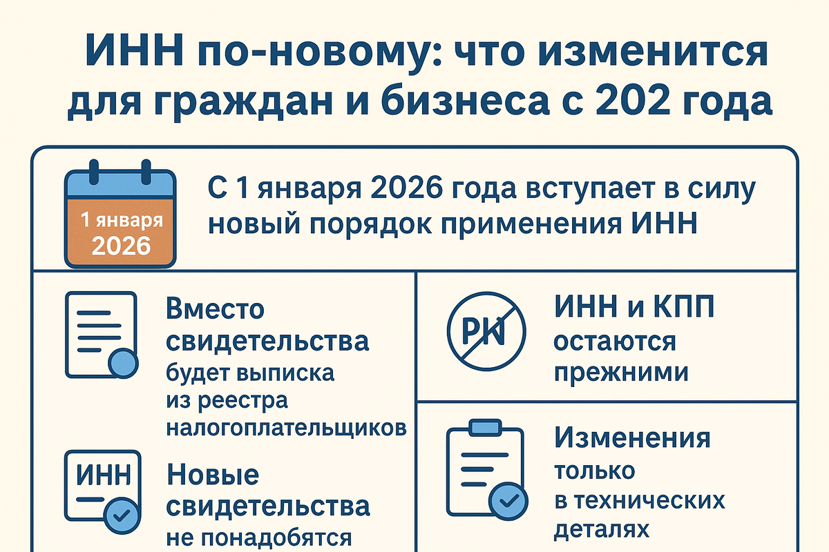 Многие уже слышали, что «ИНН станет другим», «будет 20 цифр» или «заменят свидетельства». Давайте разберёмся подробно и простым языком — что действительно изменится, зачем это нужно и что делать каждому налогоплательщику.