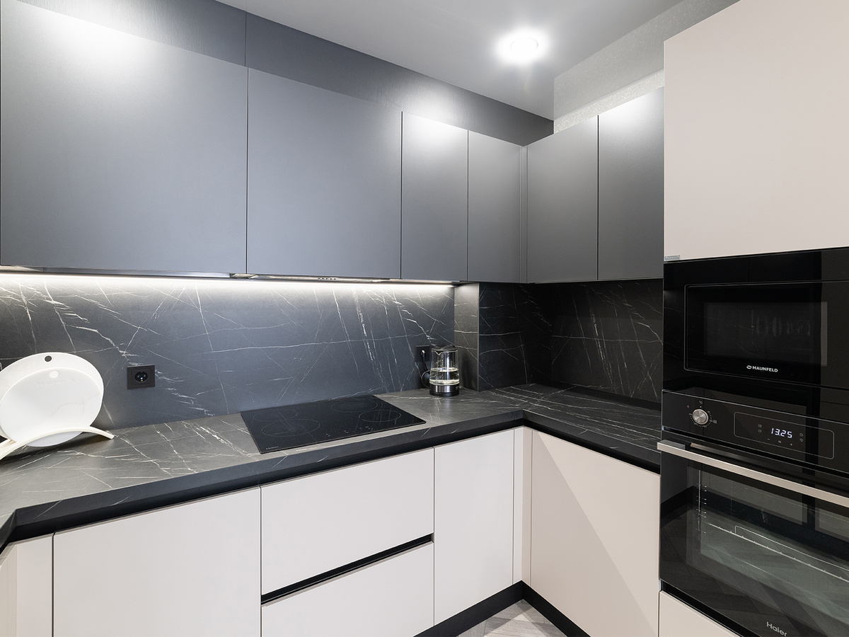 Микроволновка над варочной панелью — классическое решение для маленьких кухонь. Это кажется логичным: экономится место на столешнице, и техника всегда под рукой. Но это один из самых спорных и небезопасных приемов в планировке. Специалисты фабрики «Мария» объясняют, почему от этой идеи лучше отказаться. Это главный и самый веский аргумент. Представьте себе эту ситуацию: Большинство производителей микроволновых печей прямо указывают в инструкции по эксплуатации: «Не размещать над газовой или электрической плитой без вытяжного шкафа». Игнорирование этого правила может привести к отказу в гарантийном обслуживании. К счастью, есть много более удачных мест для размещения. Вывод: