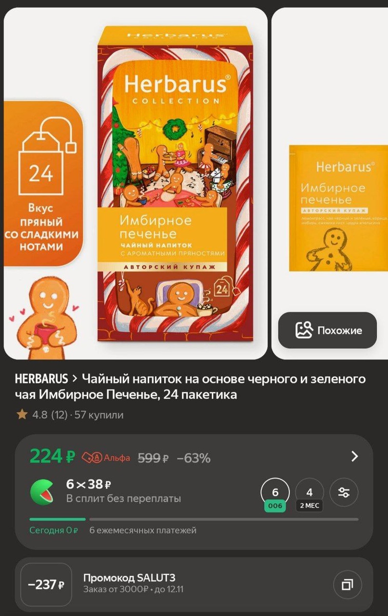 Чайный напиток на основе черного и зеленого чая Имбирное Печенье, 24 пакетика за 224₽ + ПРОМОКОД за ПОДПИСКУ https://market.yandex.ru/cc/7wvdJn