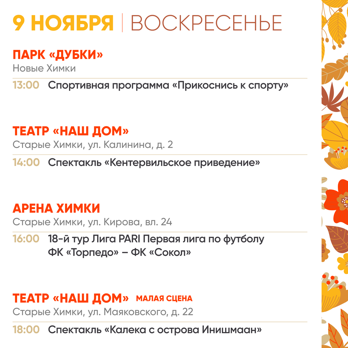 В эти выходные в Химках пройдут культурные и спортивные активности.