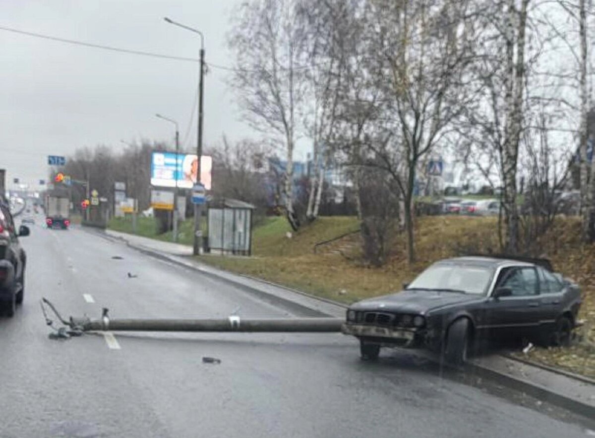 На улице Ларина в Нижнем Новгороде BMW снесла столб и спровоцировала пробку