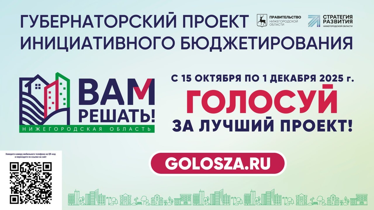 Время выбирать будущее своего двора и города! Проголосуйте за инициативные проекты благоустройства до 1 декабря. Жители Нижегородской области на сайте golosza.ru могут выбрать для благоустройства территорию, которую считают важной для комфортной жизни. В этом году предложили больше 800 проектов — от новых скверов и детских площадок до ремонта дворовых территорий. 🔴 Принять участие просто: 1️⃣Перейдите на официальный портал golosza.ru 2️⃣Выберите свой муниципальный или городской округ. 3️⃣Ознакомьтесь со списком предложенных инициатив. 4️⃣Авторизуйтесь через портал «Госуслуги» или по упрощенной системе (для участников прошлых голосований — по номеру телефона). 5️⃣Отдайте свой голос за один самый важный для вас проект. 🔴 Что в итоге? Проекты, набравшие наибольшее число голосов, получат финансирование из областного бюджета и будут реализованы уже в 2026 году. Итоги голосования мы узнаем до конца этого года. Это реальный шанс сделать свою улицу, двор или район комфортнее. Пусть ва