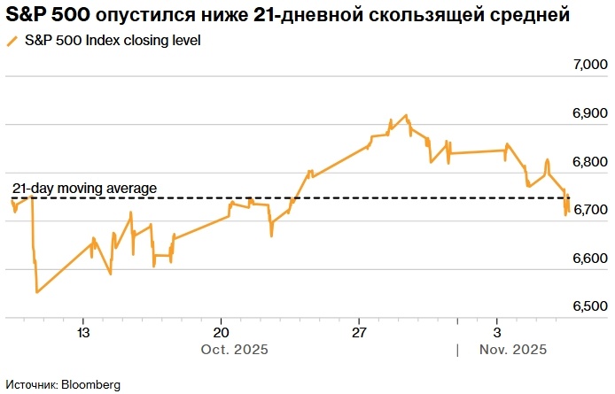 Нестабильный фондовый рынок США вынуждает трейдеров анализировать технические графики в поисках признаков замедления продаж. 50-дневная скользящая средняя на уровне 6665 служит ключевой линией защиты. Технический аналитик Тайлер Ричи отмечает, что падение ниже этого уровня сигнализирует о «появлении технических трещин», тогда как возвращение к 6748,10 может повысить интерес к риску Внезапный хаос на фондовом рынке США заставил трейдеров внимательно изучать технические графики в поисках признаков, которые могли бы указать на возможное замедление волны распродаж. Сомнения в рентабельности инвестиций в искусственный интеллект, сопровождаемые высокими ценами на акции, привели к тому, что в четверг индекс S&P 500 упал до 6720,32 пункта, что стало самым низким показателем за последние две недели. Аналитики отмечают, что 50-дневная скользящая средняя, находящаяся на уровне 6665 пунктов, может стать важным уровнем поддержки. Тайлер Ричи, технический аналитик и редактор Sevens Report, заявил, ч
