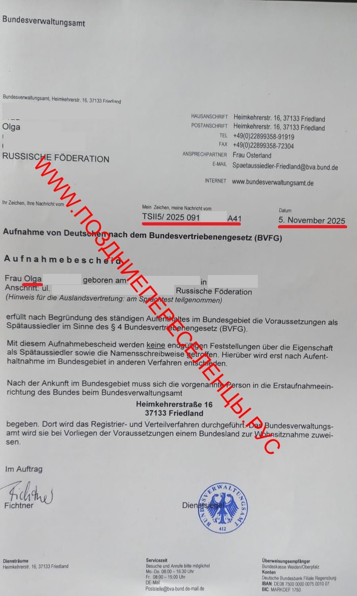 СТАТИСТИКА: 05.09.2025 отправка полного комплекта документов. 16.09.2025 присвоение номера дела.. 05.11.2025 ВЫЗОВ ПОЛУЧЕН. ИТОГО: 2 МЕСЯЦА. НАЦИОНАЛЬНОСТЬ: В СОРБ была дополнена с "ПРОЧЕРКА" на "НЕМКА" по решению ЗАГС. НАЦИОНАЛЬНОСТЬ: В СОР ребёнка отсутствует строка национальности. ПОДТВЕРЖДЕНИЕ ЗНАНИЙ НЕМЕЦКОГО ЯЗЫКА: Goethe-Zertifikat B1 des Goethe-Institutes модуль "SPRECHEN-ГОВОРЕНИЕ". Мы желаем ОЛЬГЕ С. и её семье успешной интеграции на новой Родине. С уважением, Ваши Сергей и Марина.🇩🇪🙏 #поздниепереселенцы #spätaussiedler #поздниепереселенцывгерманию