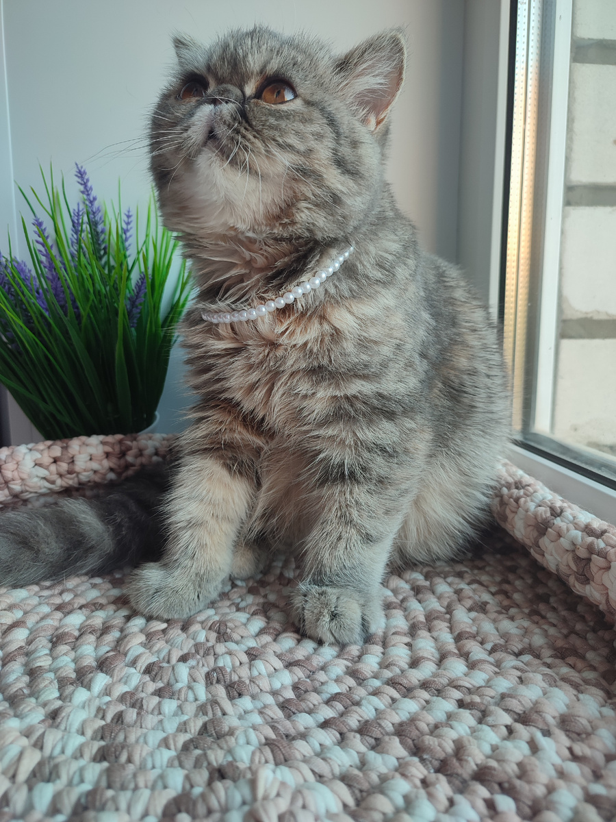 Лулу - котенок породы экзот. В простонародье - короткошерстный перс. Давным давно зателивые люди решили скрестить американскую короткошерстную и персидскую. Вот и получили кошку с плотной короткой шерстью и плоской мордой🙂 У нас 11 лет жила кошка Нюша. Красный экзот, но в 2021 году она умерла. Четыре года я не хотела никого заводить. Ни в какую. Ходила к друзьям, тискала животных, но заводить - нет. Очень тяжело прощаться. Но вот однажды, просматривая группу в телеграм заводчицы кошек (я была на неё подписана лет 7) я увидела видео котенка. Темнота. Дрожь в руках. Очнулась. Телефон в руках, а там мое сообщение: "Юля Здравствуйте. У вас этот котенок кем-то забронирован?" "Нет". И я уже перевожу деньги🤣 Так и не поняла что это было🤣 муж сказал, что я повернулась к нему с телефоном, стеклянными глазами, показала видео и сказала "Хочу". Он согласился🙂 Мы знали, что порода непростая, с множеством нюансов. Нужен уход за глазками и носиком, аллергенная... Но как пройти мимо плоскордика?