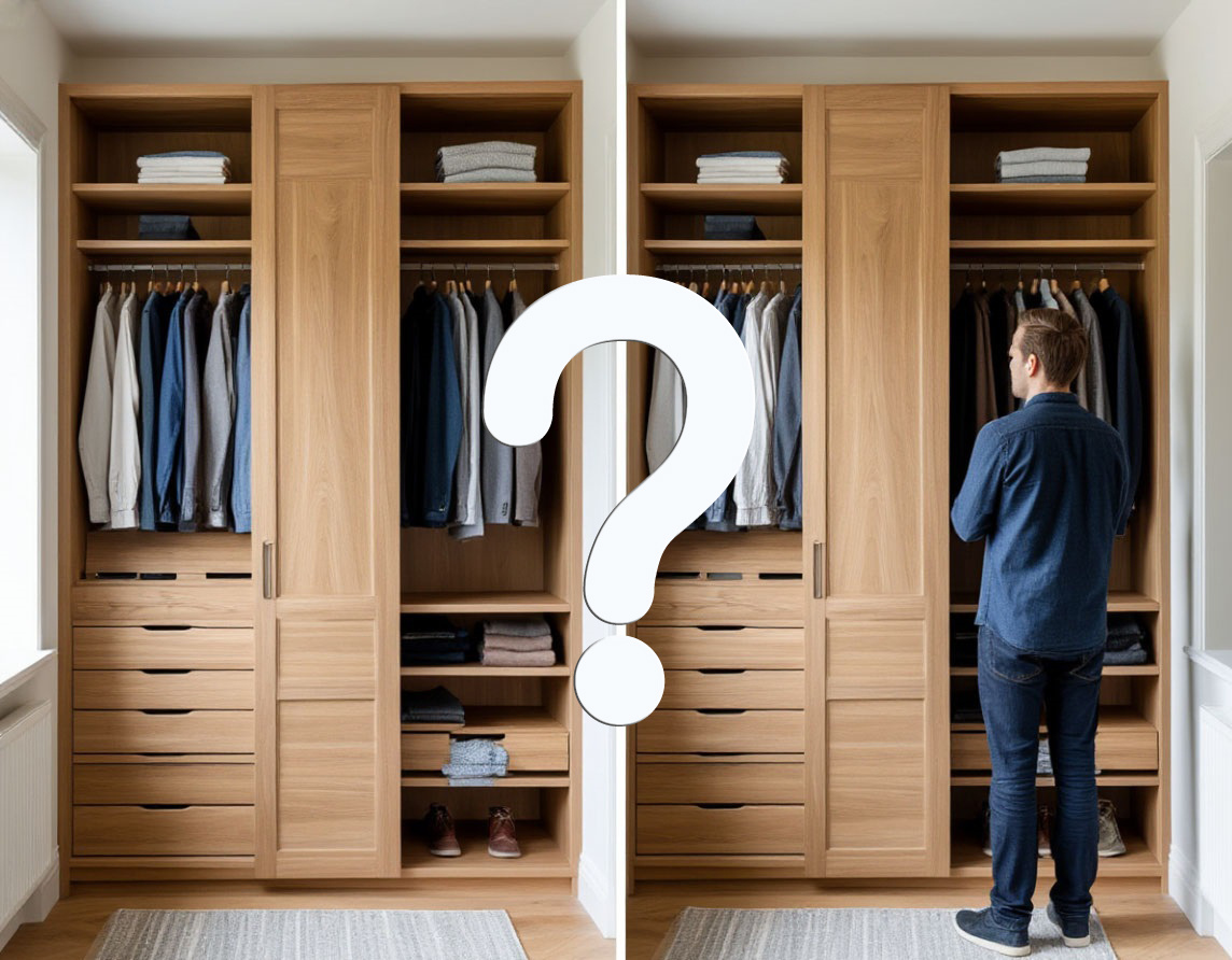 На фото — вроде бы похожие модели: двери купе, полки, ящики. Но при установке всё становится ясно: у одного производителя фасады идеально сходятся, выдвижные ящики скользят мягко и бесшумно, а другой вариант уже через пару месяцев «плывёт» и не закрывается.