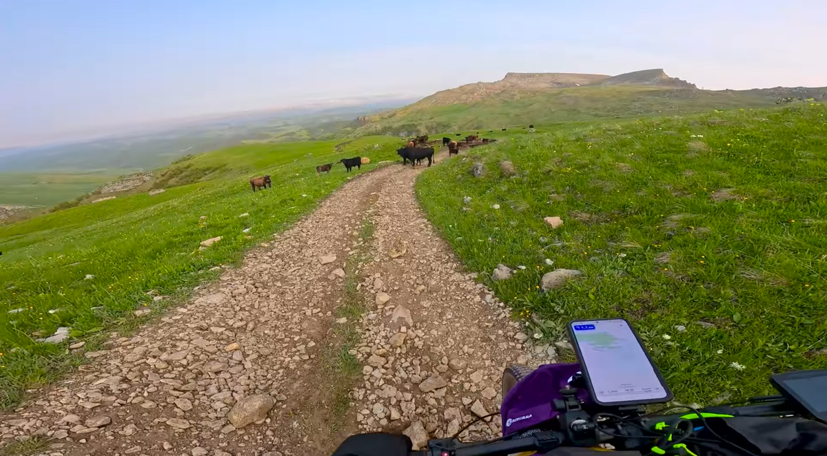 Бросив тормоза, я лечу с горки и не успеваю оглядываться на приближающихся ко мне быков. Топот копыт становится все ближе, а боковым зрением я замечаю, что стадо уже поравнялось со мной и начинает сближаться. Спрыгнув с велосипеда, я выставляю его как защитный барьер, и десяток особей проносится в нескольких метрах от меня. Они пробегают вперед и останавливаются, что бы развернуться и вновь направиться в мою сторону. Мне нельзя оставаться на месте, поэтому я снова мчусь прочь. Вся дорога состоит из острых камней и булыжников, недающих мне отпустить руль и достать шумовые патроны. Я не знаю, как избавиться от преследования. Бычки снова догоняют меня и проносятся впереди велосипеда, однако на этот раз убегают далеко вперед и больше не возвращаются... Должен признаться, я абсолютно не разбираюсь в поведении рогатого скота и вполне допускаю, что читатели живущие в деревнях, посмотрят на меня как на идиота. Тем не менее, мне было довольно страшно. Затоптали бы меня бычки, и не кому был