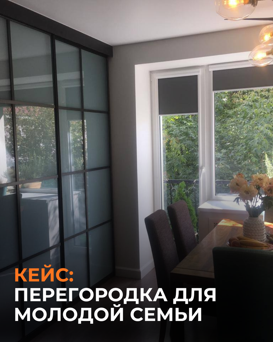 Хочу показать один из наших кейсов — наверное, самый популярный запрос от клиентов. Когда нужно разделить спальню и гостиную, но при этом сохранить свет и ощущение пространства. 📍 Задача: Молодая семья только въехала в новую квартиру после ремонта.Хотели отделить кровать от гостиной, чтобы создать уютную спальную зону без потери света. 📐 Размер конструкции: 2100 × 2600 мм ⚙️ Решение: Тонкий S-образный алюминиевый профиль в цвете венге и матовое стекло с раскладкой —3 горизонтальных и 1 вертикальный разделитель. 🕒 Срок: 12 календарных дней с момента согласования макета. 💰 Стоимость: 79 800 ₽ — без доставки и монтажа 89 300 ₽ — с доставкой в пределах МКАД и установкой Результат — лёгкая, аккуратная перегородка, которая делит пространство на зоны,но не перекрывает свет и делает комнату уютной. 📆 В декабре — бесплатный замер. Специалист приедет, покажет материалы, поможет подобрать решение и рассчитает стоимость. ✉️ Пишите слово «замер» в комментариях — подберём удобное в