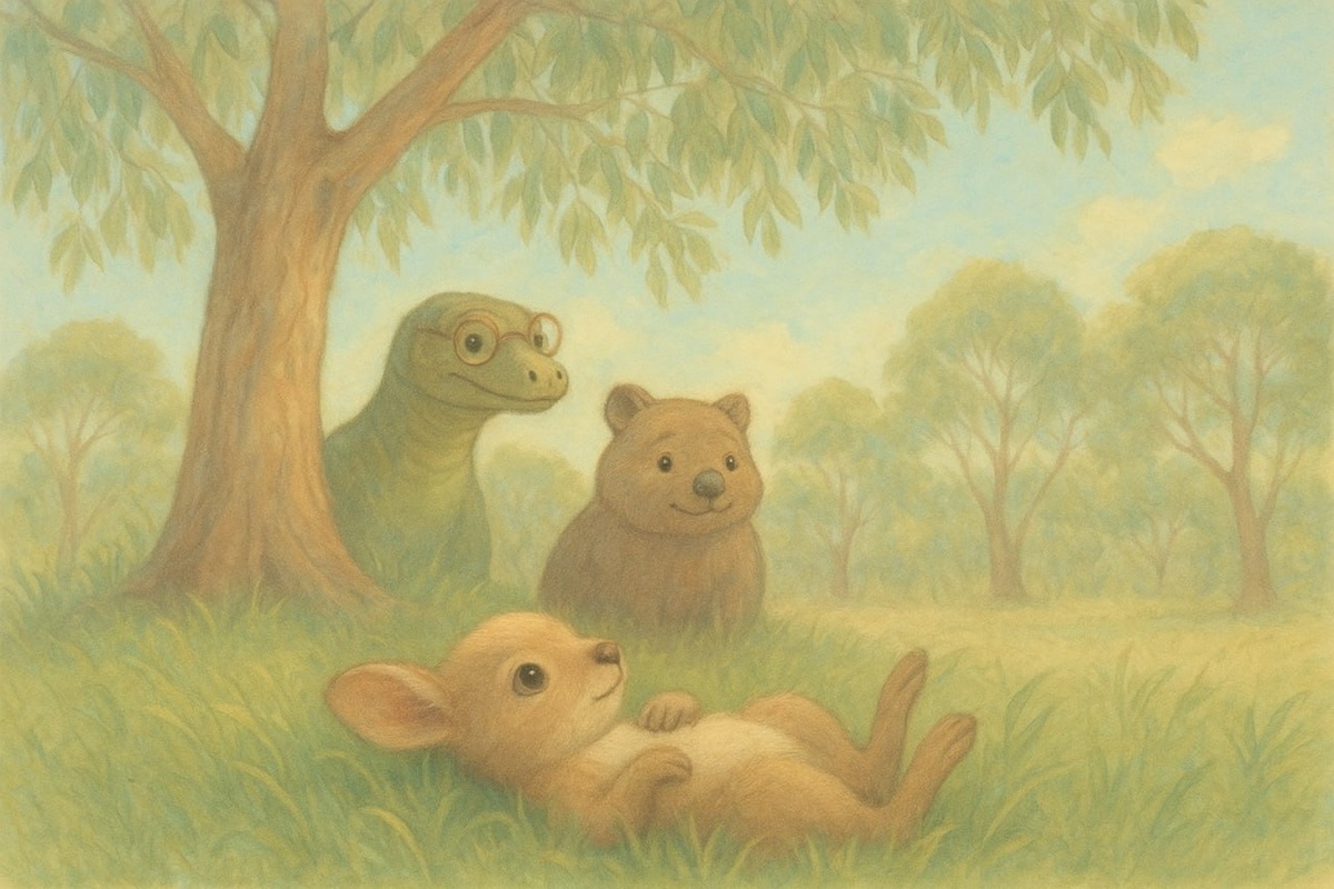 В уютном Вомбат-граде, где улицы пахли эвкалиптом и свежей выпечкой, жил маленький кенгурёнок по имени Бунди. Совсем недавно в его семье случилось великое чудо: у мамы Лоры и папы Джека родился малыш - крохотный братик, которого назвали Лео.