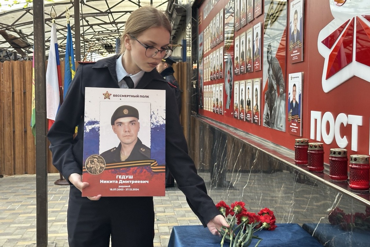 В память о героическом выпускнике состоялся митинг, в котором приняли участие вице-мэр Наталья Рябоконь, зампредседателя Совета города-курорта Владимир Пономарев, мама героя Татьяна Гедуш. Наталья Рябоконь отметила, что наш город гордится каждым героем и анапчане будут помнить имена всех, кто не пожалел себя на полях сражений, а также поблагодарила маму Никиты за воспитание сына. Никита Гедуш окончил школу № 21 станицы Анапской, с детства мечтал стать военнослужащим, поэтому выбрал специальность «Правоохранительная деятельность» в АИТ. Он хорошо учился, занимался спортом, помогал людям в рядах «Молодой Гвардии», его уважали и ценили одногруппники. После окончания техникума анапчанин прошел курс молодого бойца, подписал контракт и ушел на СВО. В скором времени в техникуме появится мурал, посвященный Никите, а сегодня его портрет занесен на Стену памяти рядом с лицами героев, защищавших Россию в разные годы.