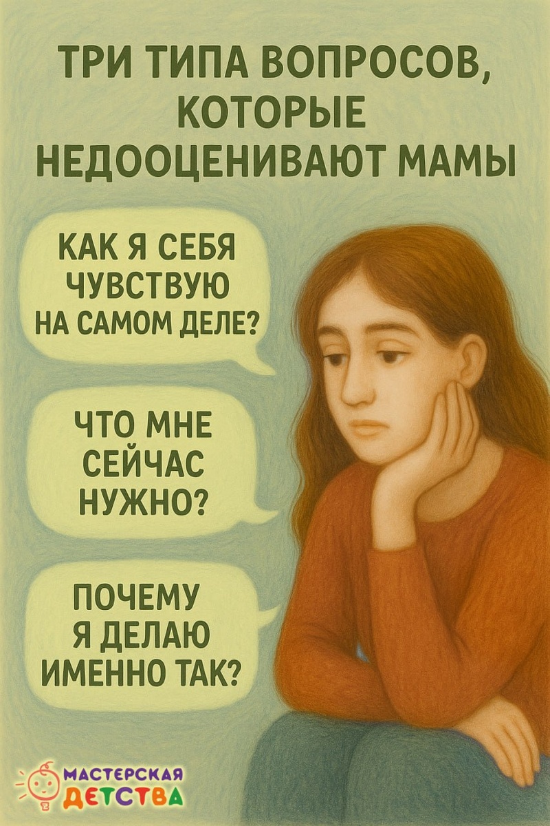 Три типа вопросов, которые чаще всего зря недооценивают мамы Каждый день мама отвечает на десятки детских «почему?», но часто забывает задать главные вопросы себе. Наш новый спецпроект о том, как через честные внутренние диалоги вернуть поддержку, уверенность и спокойствие. 🌿 1. «Как я себя чувствую на самом деле?» Мы так часто живём на автомате, что перестаём замечать усталость, раздражение, грусть. А ведь признание своих эмоций — это первый шаг к восстановлению, а не слабость. 🌷 2. «Что мне сейчас нужно?» Маме тоже нужны ресурсы: тишина, общение, отдых, вдохновение. Когда есть пространство для себя — появляется и сила быть рядом с ребёнком без раздражения. 💛 3. «Почему я делаю именно так?» Иногда мы повторяем сценарии, не замечая этого. Осознанность помогает не просто «воспитывать», а строить живые, настоящие отношения. ✨ Этот спецпроект создан, чтобы помочь мамам говорить с собой с тем же вниманием и теплом, с которым мы учим слушать детей. Пройдите опрос уже сейчас. Подде