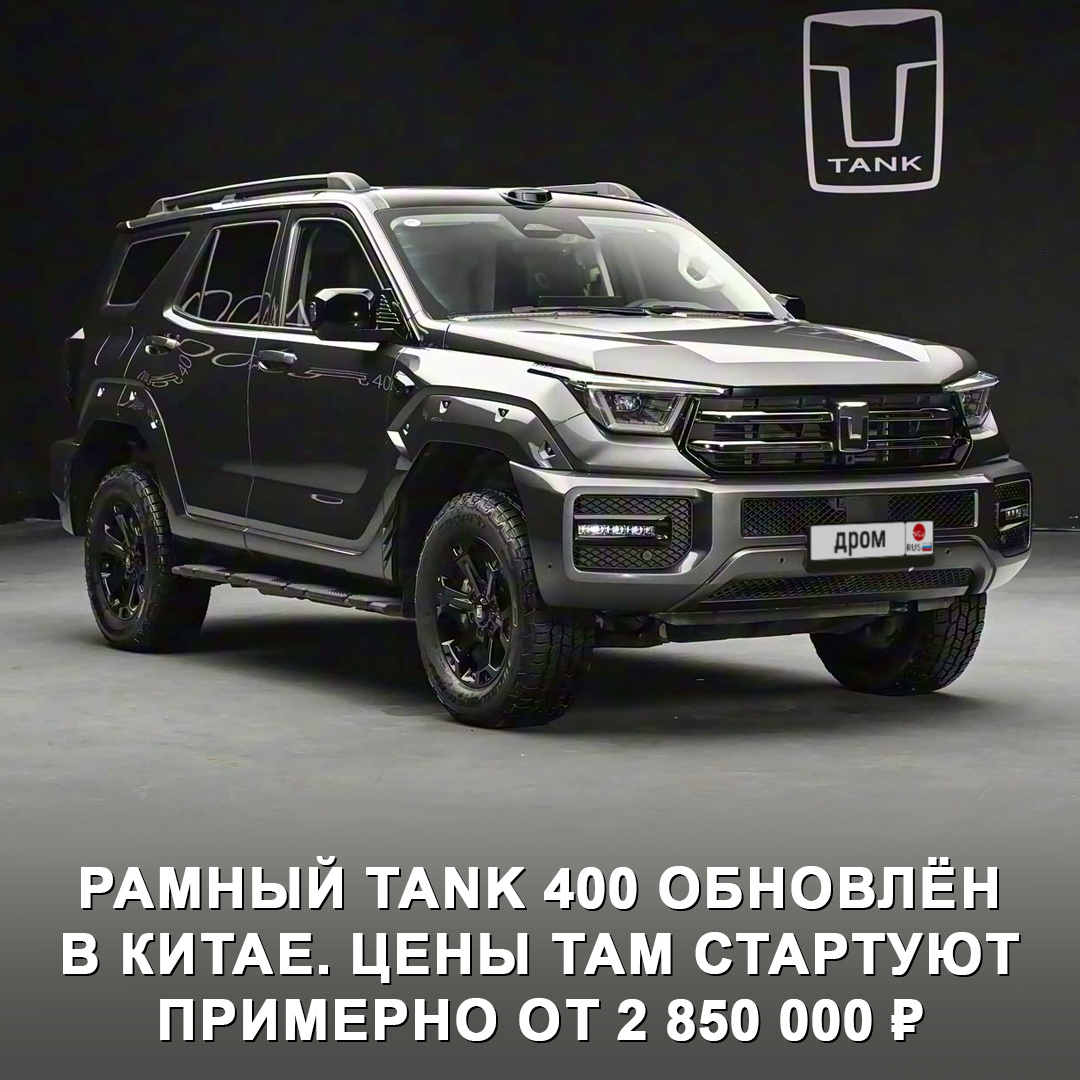 Хорошо известный у нас рамный TANK 400 пережил обновление в Китае. Цены на него там стартуют примерно от 2 850 000 ₽ 👀
