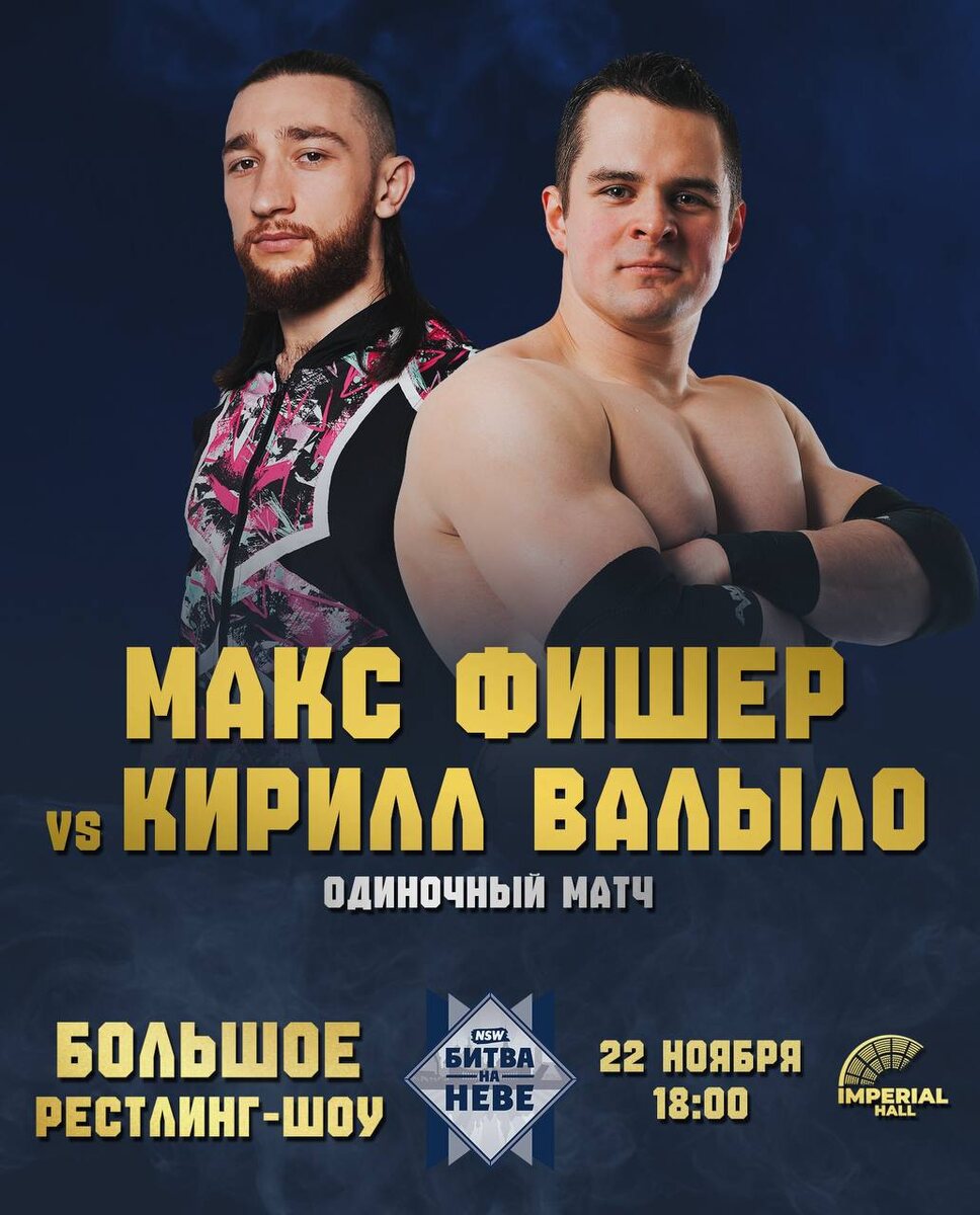 ⚡️ЕЩЁ ОДИН МАТЧ НА ШОУ "БИТВА НА НЕВЕ" 🔆 БИЛЕТЫ НА ШОУ: vk.cc/cOBmjz Противостояние Макса Фишера и Кирилла Валыло усиливалось в течении последних месяцев и достигло своего апогея на прошлом шоу. В последствии Кирилл Валыло отказался от своего участия в лестничном матче и вызвал Макса Фишера на одиночный бой 22 ноября на главном шоу года от NSW. ————————————————— NSW БИТВА НА НЕВЕ 2025 Дата: 22 ноября 2025 г. Место: Imperial Hall Двери: 17:00 Время начала шоу: 18:00 Стать партнером шоу: spbnorthernstorm@gmail.com
