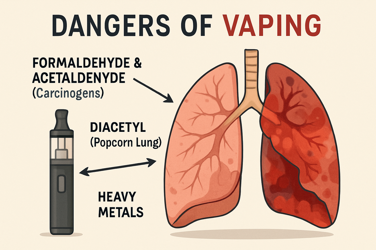 Вейпы — это не безвредная альтернатива традиционному курению. Это продукты, которые содержат канцерогены, вызывают серьезные заболевания легких (EVALI), повреждают развивающийся мозг подростков и увеличивают риск онкологических заболеваний.