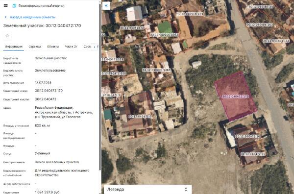 Название: Земельный участок площадью 800 кв.м., расположенный по адресу: Российская Федерация, Астраханская область, г Астрахань, р-н