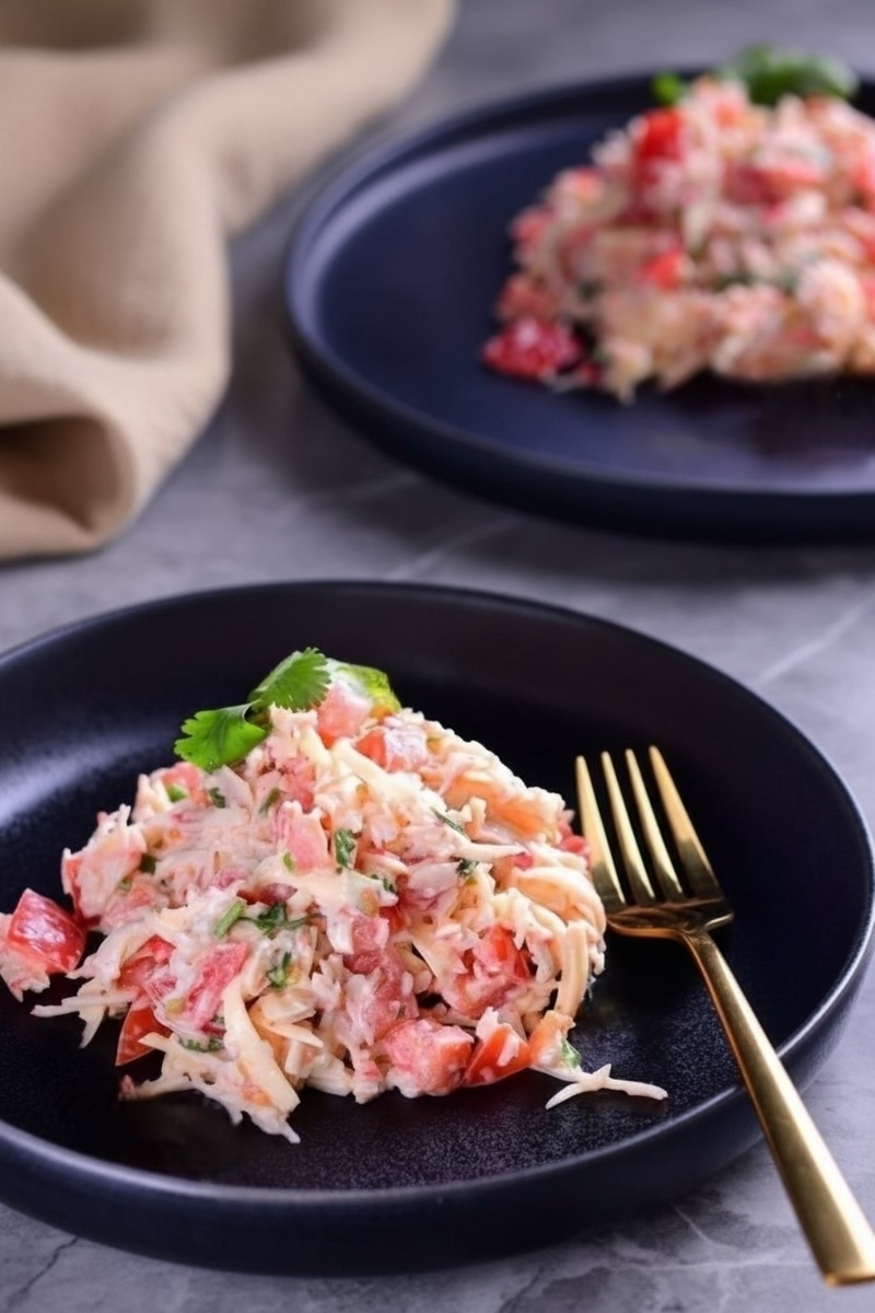 Простой, легкий, сочный, пикантный, и самое ГЛАВНОЕ - бюджетный. Ингредиенты: — Крабовые палочки — 1 упаковка, 240-250 гр — Помидоры — 3 шт. (средние, плотные) — Сыр твердый (например, российский, гауда) — 100 гр — Чеснок — 2 зубчика — Зелень петрушки — небольшой пучок 10-15 гр — Майонез — по вкусу (для заправки) — Соль — по вкусу Пошаговый рецепт: ✔️ Крабовые палочки (предварительно размороженные, если нужно) и твердый сыр натрите на крупной терке. Помидоры вымойте, обсушите и нарежьте небольшими кубиками. Чтобы салат не был слишком водянистым, можно удалить семена и лишний сок. Чеснок очистите и пропустите через мелкую терку или чеснокодавилку. Петрушку мелко порубите. ✔️ В миске смешайте все подготовленные ингредиенты: натертые крабовые палочки и сыр, кубики помидоров, чеснок и зелень. ✔️ Посолите салат по вкусу. Заправьте майонезом и аккуратно перемешайте до однородности. ✅ Советы и вариации: — Против лишней влаги: Чтобы помидоры не пустили слишком много сока, режьте