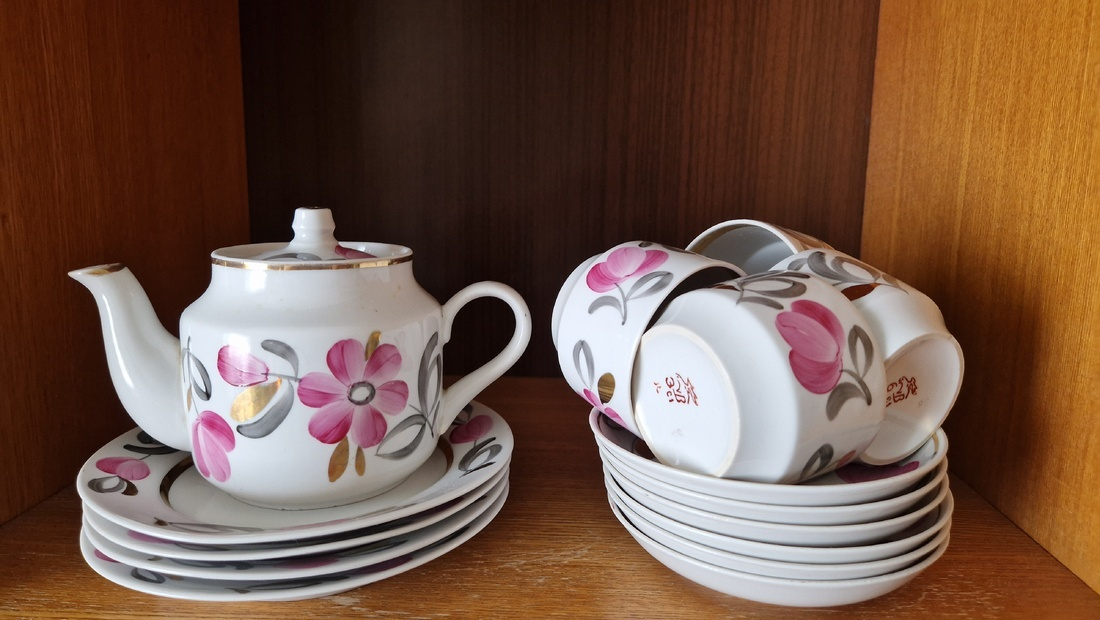 Периодически мы тут устраиваем ревизию: извлекаем старые ковры, роемся в бабушкиных сундуках, разбираем антресоли. Ну и посуда, конечно, в фамильном наследии вещь немаловажная - добавим в коллекцию новые экземпляры. Елена Короннова Я купила маме с первой стипендии вот такой сервиз "Вербилки": В метро коробку уронили, разбились две тарелки. Для меня - трагедия, а мама все равно была рада! Пользуется до сих пор. Вот, правда, сахарница тоже разбилась. Ирина Жежерун От бабушки посуды почти не осталось. Несколько винных фужеров чешского цветного стекла и красивое фарфоровое немецкое блюдо с ручкой - наподобие плоской корзины - стоят в горке в её квартире, где теперь живут мои двоюродные сестры. Столовой серебро исчезло бесследно. А у меня сохранились сервизы - свадебные подарки маме с папой. Чайный "Мейсенский букет" и ручной огранки хрустальные фужеры и рюмки, к ним изящный графин под водку. Чайный сервиз сохранился полностью, хотя его всегда подавали к чаю для гостей, а они у нас бывали