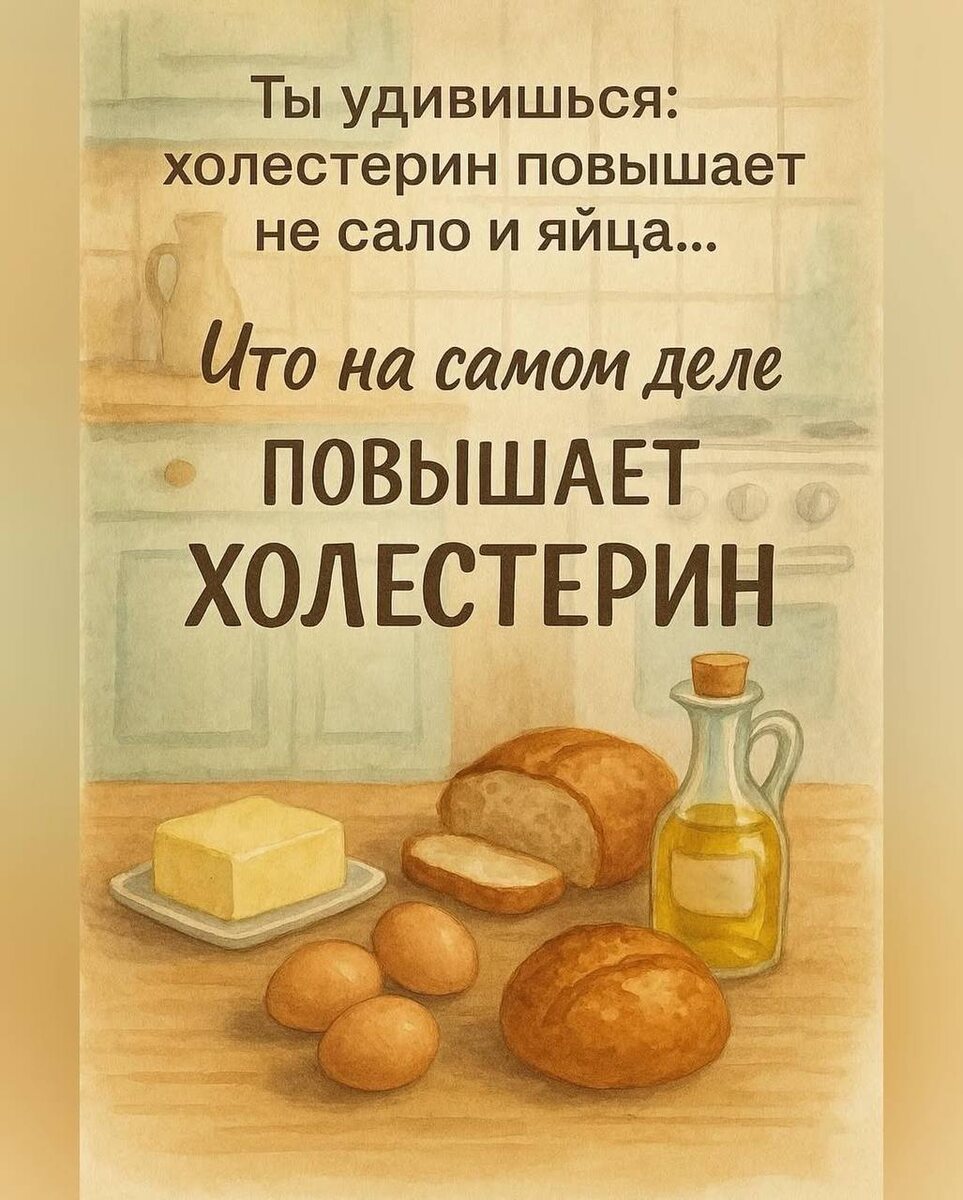 🌿Холестерин — это не зло, а важная часть твоего здоровья. Он нужен для гормонов, мозга и клеток. Но когда в жизни слишком много кофе на бегу, фастфуда и тревоги — уровень растёт не из-за масла, а из-за образа жизни. 💛 Добавь в день немного заботы о себе ✨