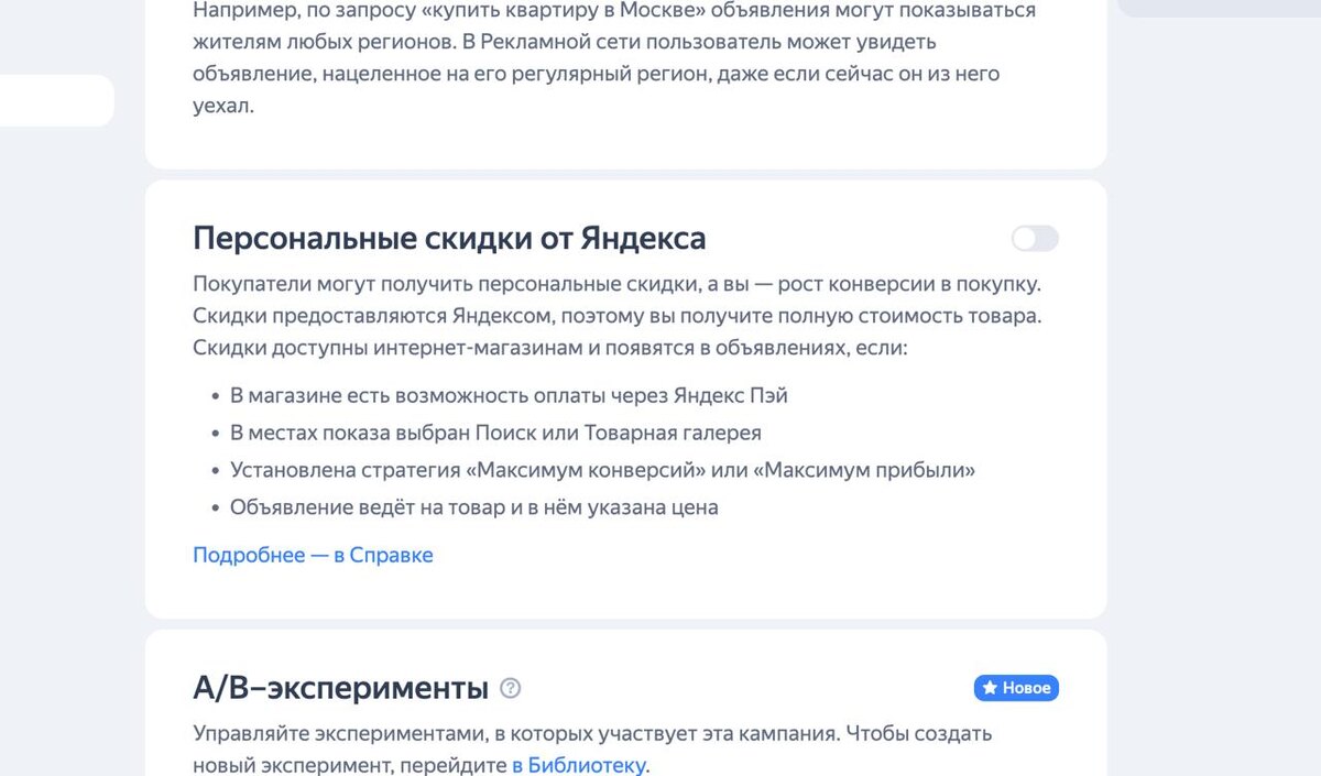 Персональные скидки от Яндекса для инет-магазинов Появилась новая опция в РК. В целом, может действительно поднять конверсию. Надо тестить. Опция доступна, если: - В магазине есть возможность оплаты через Яндекс Пэй - В местах показа выбран Поиск или Товарная галерея - Установлена стратегия «Максимум конверсий» или «Максимум прибыли» - Объявление ведёт на товар и в нём указана цена Посмотрим, как будет работать. А то в Маркете периодически замечаю косяки - пример на скрине №2. Стоит метка "Ниже рынка", хотя цена в 2 раза выше. Тут не скидка, а накидка получается😁