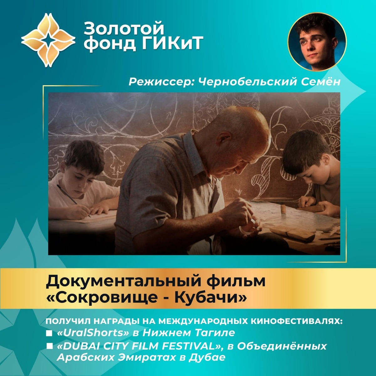 Фильм выпускника ГИКИТ Семёна Чернобельского «Сокровище-Кубачи» покоряет мир! 🎉 Картина о талантливых дагестанских ремесленниках недавно вернулась с Международного кинофестиваля UralShorts в Нижнем Тагиле, где получила заслуженную награду — особое упоминания жюри за визуальную эстетику, передающую красоту неспешного ритма жизни🏆 🎬 А теперь — новый триумф! Фильм официально отобран в программу престижного Dubai City Film Festival (ОАЭ)! Поздравляем Семёна и всю команду проекта с международным признанием! Желаем покорения Дубая! ❤ #ЗолотойФондГИКИТ