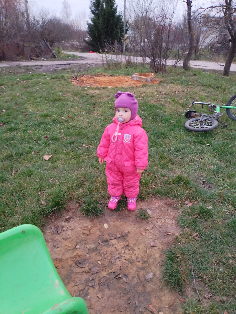 После сна немножко совсем погуляли, Севу пришлось идти мыть. Смысла выходить ещё раз не было уже. А гулять мы ходили на местную площадку, пока немножко подсохло. Всю осень практически туда было не зайти, грязи по уши.