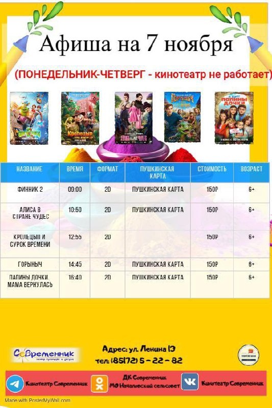 Может в кино на выходных? 🤔 🍿ДК «Современник» в селе Началово предлагает к просмотру премьеры фильмов. Скорее смотри афишу и выбирай куда сходить уже сегодня! #культурныевыходные #Приволжскийрайон