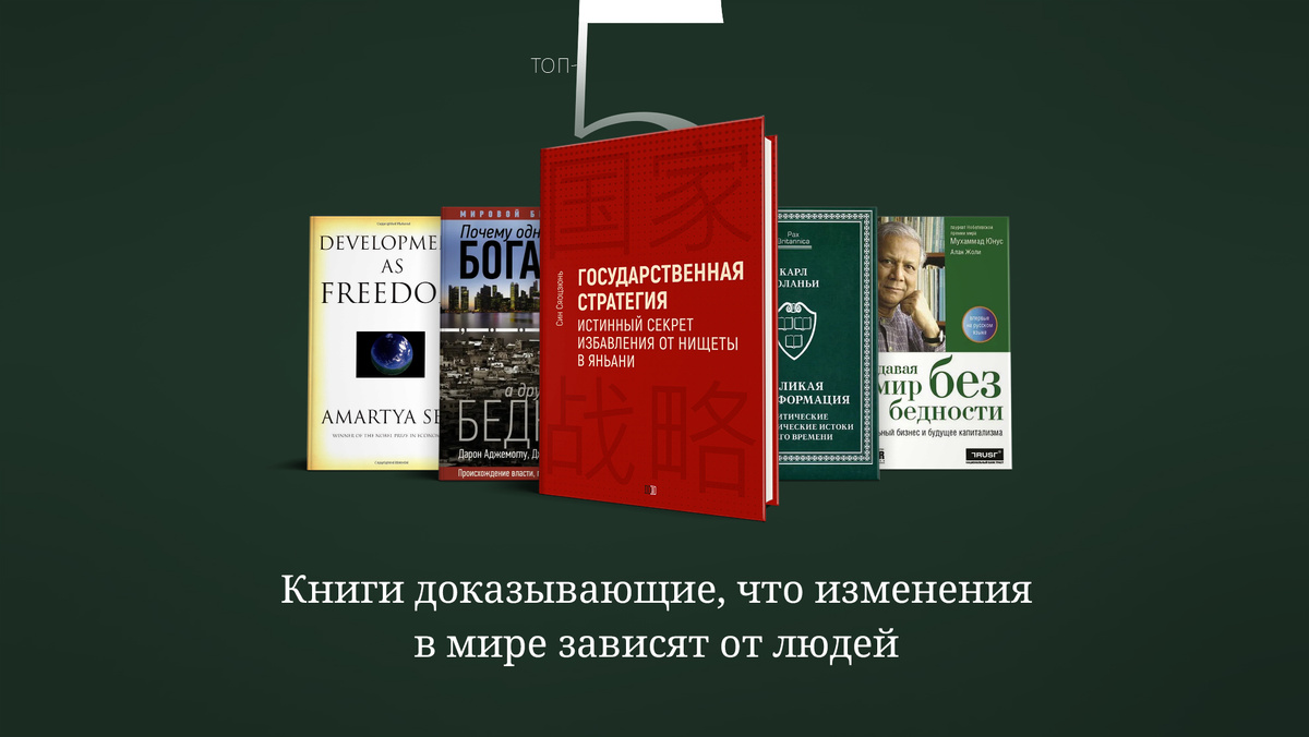 «Великая трансформация» – Карл Поланьи Классическое исследование о становлении капитализма и его влиянии на общество. Поланьи анализирует, как рыночная экономика изменила социальные отношения, породив сопротивление в форме протекционизма и регулирования. «Государственная стратегия Истинный секрет избавления от нищеты в Яньани» Син Сяоцзюнь Книга рассказывает, как регион Яньань победил бедность благодаря политике «адресной помощи» и стратегиям сокращения бедности под руководством идей Си Цзиньпина. Упорный труд и реформы позволили построить среднезажиточное общество «Почему одни страны богатые, а другие бедные» – Дарон Аджемоглу, Джеймс Робинсон Авторы исследуют истоки глобального неравенства, доказывая, что ключевую роль играют институты: инклюзивные ведут к процветанию, а экстрактивные – к застою. Книга сочетает исторические примеры с политэкономическим анализом. «Создавая мир без бедности» – Мухаммад Юнус, Алан Жоли Нобелевский лауреат предлагает модель социального бизнеса, где прибы