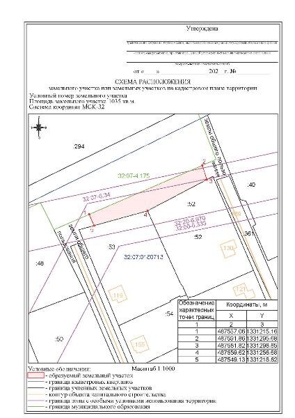Название: земельный участок из земель населенных пунктов для ведения личного подсобного хозяйства площадью 1035 м2 расположенный : Брянская
