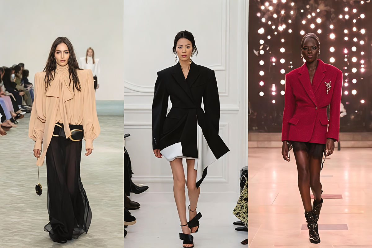 Расширенная линия плеч вернулась не просто так. Когда мир вокруг нестабилен, хочется опоры — хотя бы визуальной. Правильно выстроенный силуэт дает именно это ощущение: уверенности, собранности, внутренней силы.