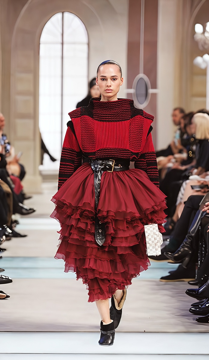 На подиумах осень-зима 2025/2026 цвета заиграли по-новому — глубокие, насыщенные тона доминировали в коллекциях Louis Vuitton, Chanel и Tom Ford. Бордовый оттенок, изумрудный и шоколадный создавали монохромные образы, где один цвет перетекает в другой, добавляя глубины. Фиолетовые нотки добавляли загадочности, а коричневые — от карамельного до насыщенного — подчеркивали уют.