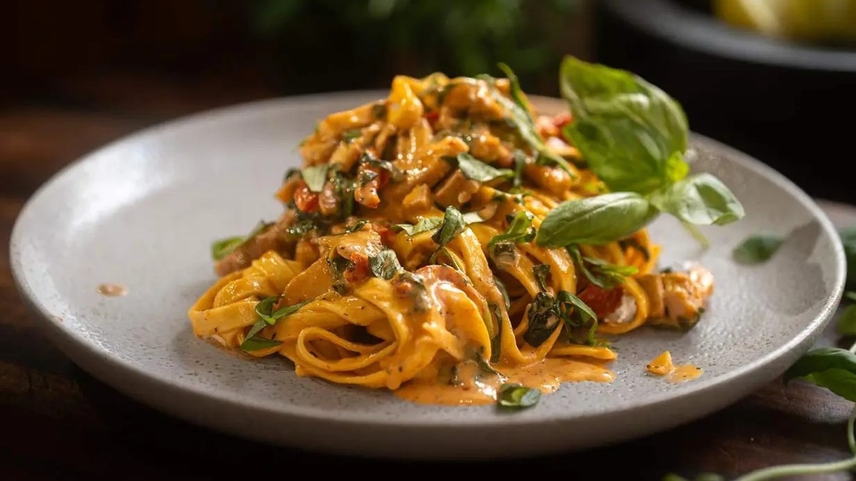 Сочные куриные бедра обжариваются до золотистой корочки и тушатся в сливочном соусе с пармезаном, чесноком, вялеными томатами и свежим базиликом. Этот невероятный соус покрывает каждую макаронину, создавая идеальный баланс остроты, легкой кислинки лимона и сливочной текстуры. Блюдо готовится достаточно быстро для ужина в будний день, но выглядит так впечатляюще, что подойдет для званого ужина.