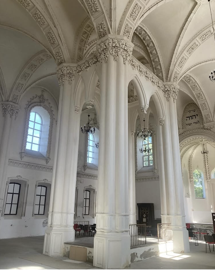 На фото главный зал Большой хоральной синагоги в Гродно. Он произвел на меня очень большое впечатление, пробудив подзабытое чувство новизны и чего-то неизведанного. Подобного интерьера я ранее не видела нигде и никогда. Конечно же, во мне сразу пробудился интерес: какой архитектурный стиль использовался при строительстве, чтобы получился такой шедевр? Чтобы ответить на этот вопрос, пришлось провести маленькое исследование. Оказалось, что за основу взят мавританский стиль. Он сформировался в результате слияния культуры мавров (арабов) и культур народов, населявших древнюю Испанию и Португалию. Мавританская архитектура — довольно редкое явление для Восточной Европы. Поэтому синагога в Гродно воспринимается как настоящая диковинка. От мавританского стиля здесь лепной орнамент с растительными мотивами и полукруглые арки. В то же время чувствуется влияние готики в виде стрельчатых арок в центре зала и ребристых сводов. Еще мне очень понравился белый цвет стен. Он позволяет вниманию соср