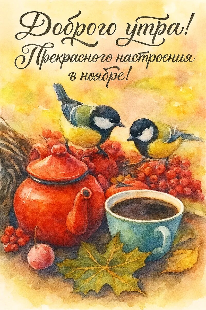 Доброе утро ноября 2025. Открытки «С добрым утром!» новые, осенние, стильные