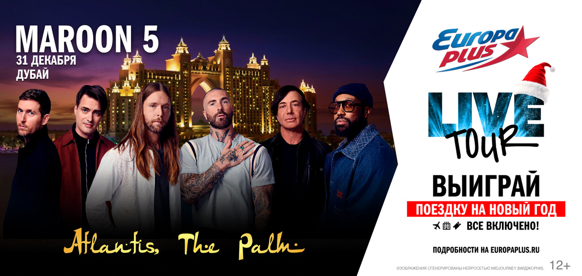 Как Новый год встретишь, так его и проведёшь. У тебя есть шанс отпраздновать 31 декабря с группой Maroon 5 в Дубае в роскошном отеле Atlantis, The Palm 5*! С Европой Плюс сбываются самые заветные мечты! Готов испытать удачу в новогоднем LIVE TOUR и провести вечер с любимыми артистами? ! Мы разыгрываем поездку на двоих на гала-ужин в пятизвёздочном отеле Atlantis, The Palm! Ты сможешь встретить 2026 год под главные под главные хиты Maroon 5 This Love и Sugar и станцевать как Джаггер. А ещё провести несколько дней в отеле с шикарными номерами и самым большим аквапарком в мире — Aquaventure! ВСЁ ВКЛЮЧЕНО: перелёт, проживание на двоих и билеты на выступление Адама Левина и его команды! Заходи на НАШ САЙТ, заполняй анкету на участие, и напиши, почему именно ты должен отправиться в LIVE TOUR на Maroon 5. Игра пройдёт с 24 по 28 ноября в Бригаде У. Участвуй в розыгрыше, и, возможно, именно ты cо своим +1поедешь в Дубай на Новый год и проведёшь незабываемые каникулы в одном из лучших отелей ми