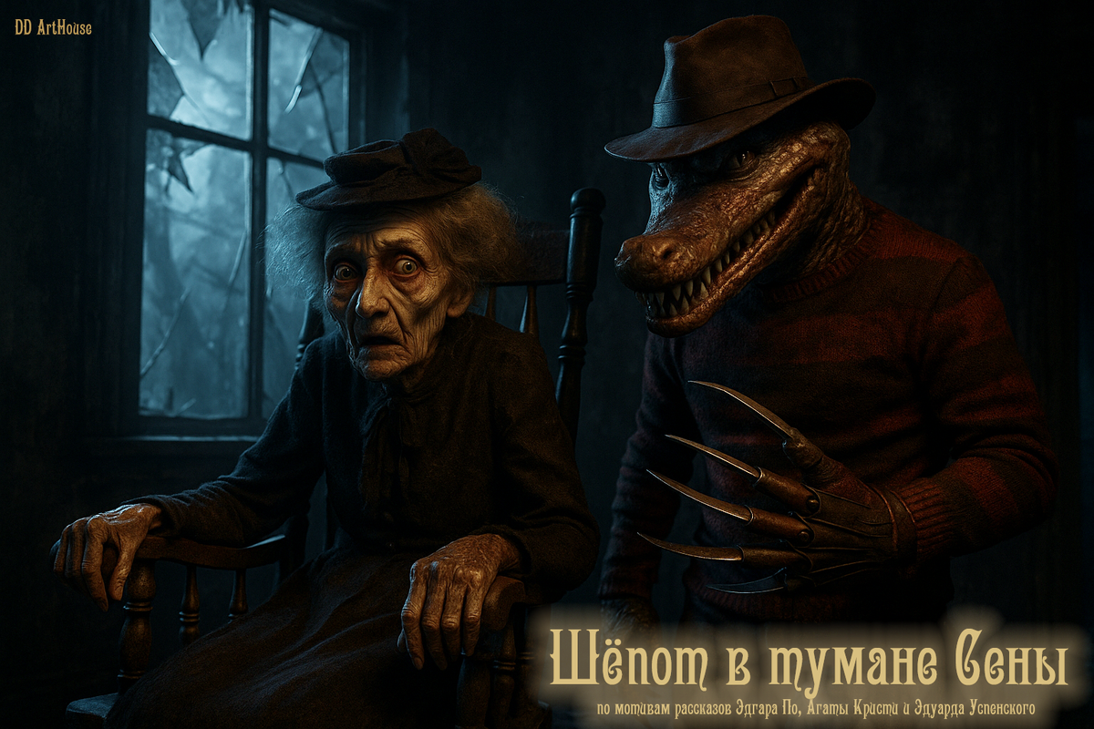 *** Если смешать Агату Кристи, Эдгара По и Успенского... *** Инспектор Мегрэ стоял под моросящим дождём на набережной Сены, закутавшись в своё верное пальто, и смотрел на маленький, уродливый домик, прилепившийся в самом неподходящем месте. От него пахло тиной, старой сыростью и чем-то ещё — сладковатым и тошнотворным, как гниющее мясо. Это был не просто запах. Это была атмосфера. Внутри, в кресле-качалке, сидела старуха по имени Шапокляк. Она была бледна, её пальцы судорожно сжимали ручки кресла, а взгляд был устремлён в пустоту, полный неземного ужаса. — Он забрал её, инспектор, — прошептала она, и её голос был похож на шелест сухих листьев. — Мою Лариску. Он посмотрел на неё своими жёлтыми глазами, и она… растворилась. Просто исчезла в клубке теней у его ног. — Кто, мадам? — спросил Мегрэ, достав свою неизменную трубку. — Гена. Крокодил Гена. Он не тот, кем кажется. Расследование начиналось с абсурда. Все в округе знали этого Гену — чудаковатого, но безобидного типа в потрёпанном п