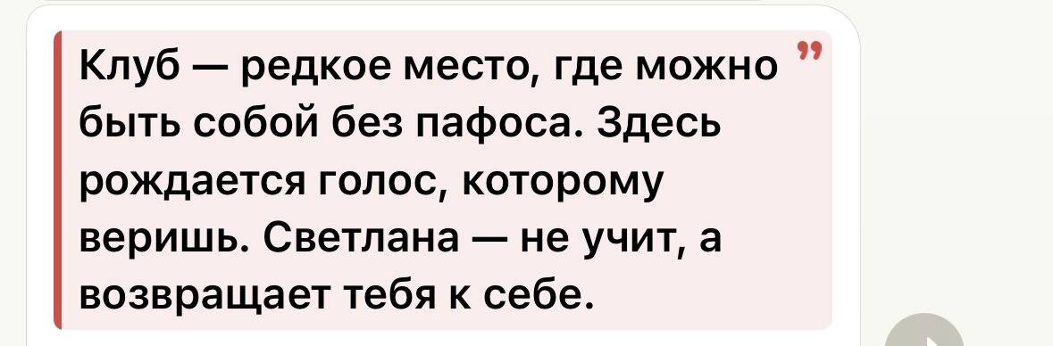 🤩🤩🤩🤩Вау, только так я могу реагировать на отклик который идет у людей на КЛУБ😍 Тема месяца ТЕЛО-основа… В тот понедельник мы уже начали прокачивать нюансы, определили что мешает. В этот понедельник будет больше практики с широтой звучания тела… Звучит красиво, а чтоб проверить конечно надо просто быть⭐️ ПОНЕДЕЛЬНИК в 19.00 а еще я подготовила подсказки как не слиться... Пиши ВЫБИРАЮ СЕБЯ и я пришлю подсказки для тебя💛 Записаться или задать вопрос: ЗАПИСЬ ———————— МЕНЮ ЗАНЯТИЙ