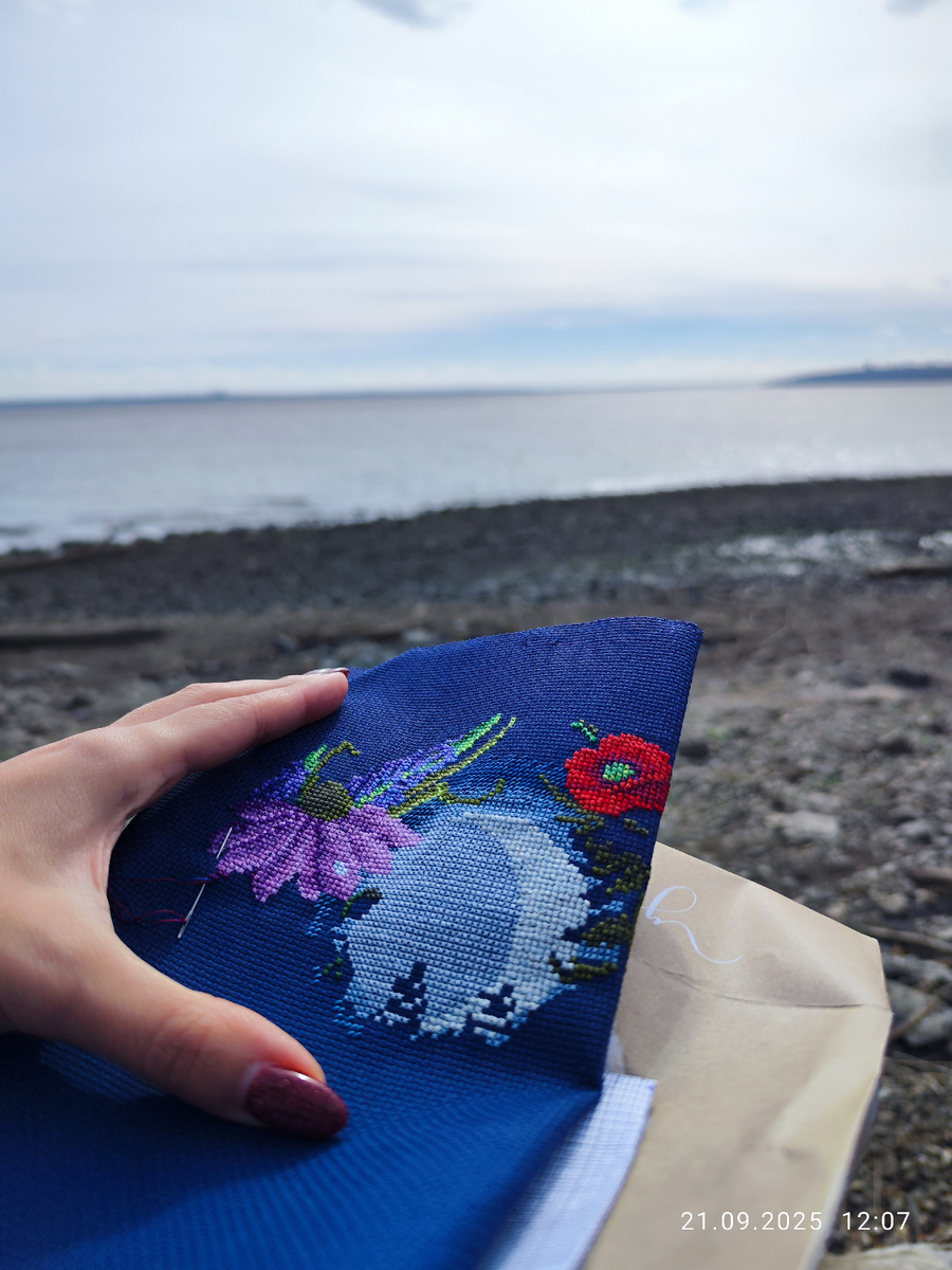 Удивительная история случилась с моей вышивкой Ночные росы от Золотых ручек. 31 августа я снимала итоговое видео за лето в саду, в 🍇винограднике. Меня так заворожила эта локация, что я просто не смогла пройти мимо и не запечатлеть её на видео) Но этот ролик дался мне сложно) ☀️Было жарко, не смотря на последний день лета, время было обеденное и телефон перегрелся, а я не заметила и продолжала съёмку. Точнее, я думала, что снимала. Потому что, закончив снимать, я подошла к телефону и обнаружила, что записалась только вступительная часть ролика🤦 Я взяла себя в руки, дала телефону охладиться и, переставив его в тенёк, начала заново свои съёмки. Второй раз ролик получился короче, но за то я учла свои ошибки в процессе первой съёмки, и постаралась их избежать. Закончив съёмку, проверила видеоматериал. Убедилась, что в этот раз всё удачно👍 записано, я стала упаковывать свой реквизит. Осмотревшись, всё ли сложила, я отправилась к своей семье, уютно расположившейся в 🌳тени яблонь. Дал