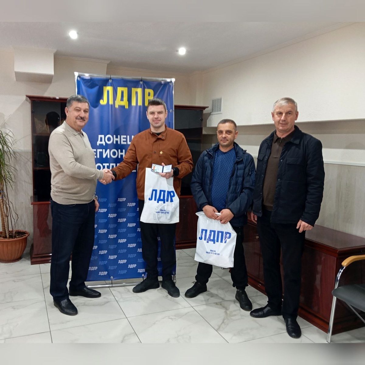 🇷🇺 Сегодня депутаты Енакиевского городского совета от ЛДПР Сергей Быковский и Сергей Аксенков вручили партийный билет новому члену ЛДПР